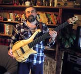 Basso elettrico a 5 corde senza tasti (fretless). Anno 2003.